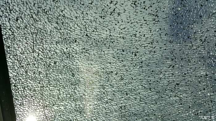厂家鉴定说是外力撞击,有一个8mm的撞击点,导致天窗破裂..