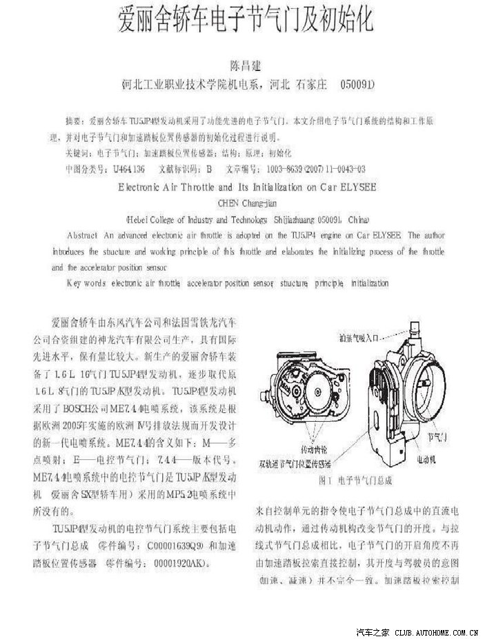 转帖:爱丽舍电子节气门及初始化