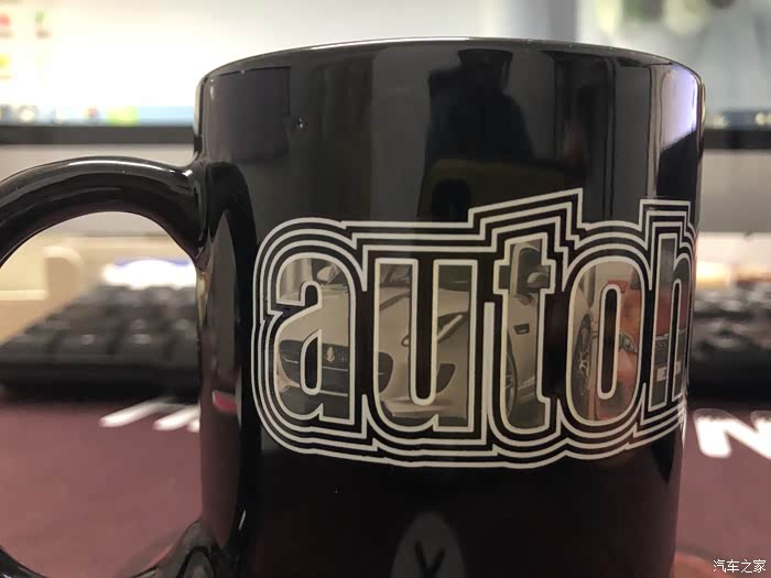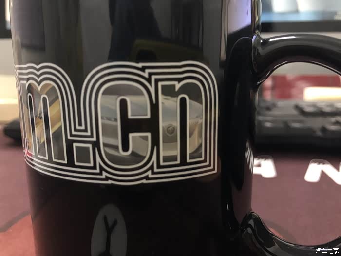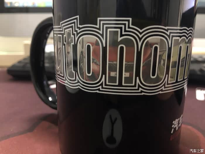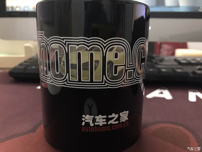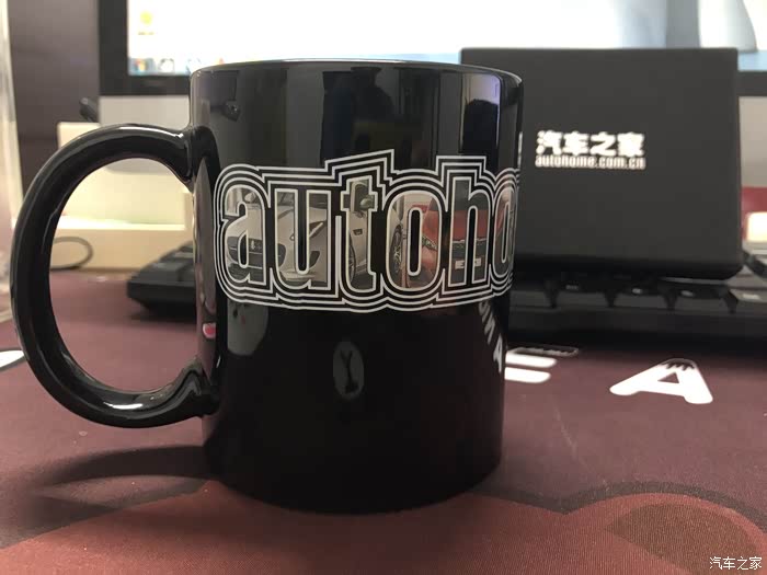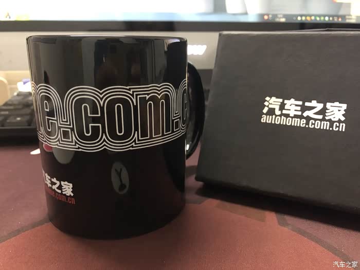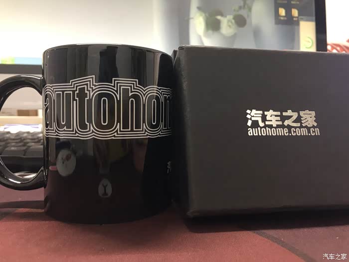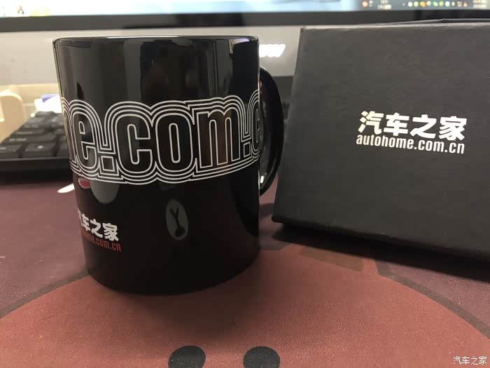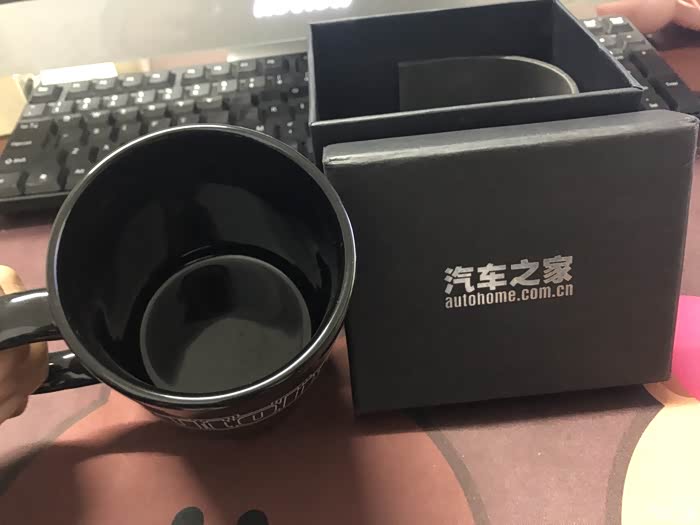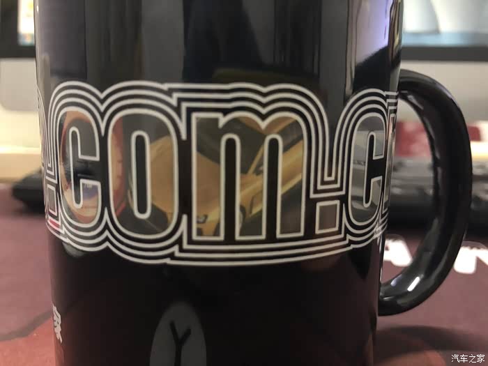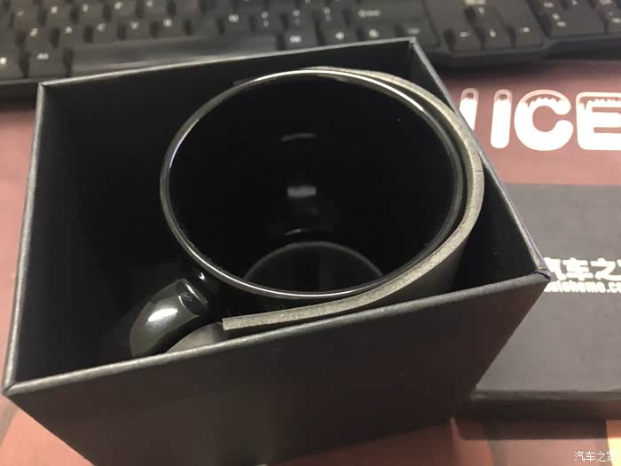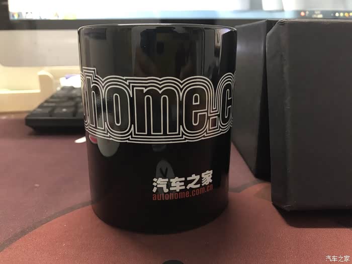 同样在盒子上也有着发泡保护,马克杯展示,黑色的杯子加上汽车之家的网址