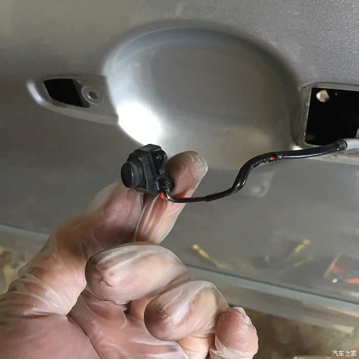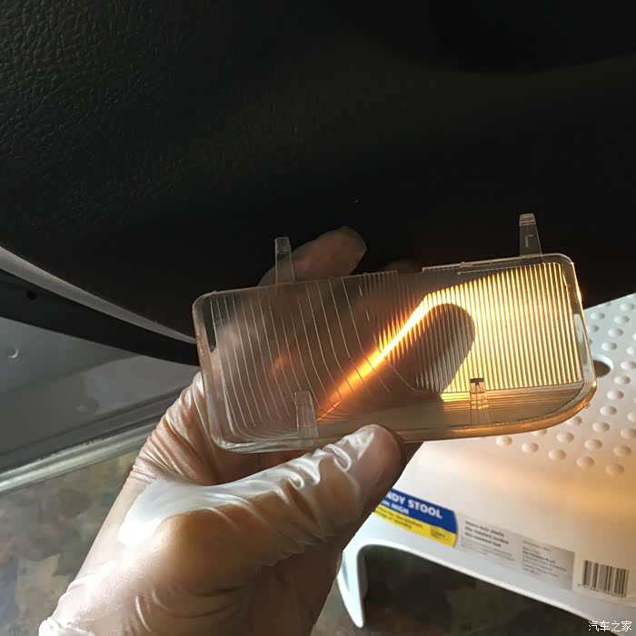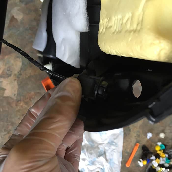 光线有点不好,手上拿着的是车门开门后亮的照明灯的线和灯座。