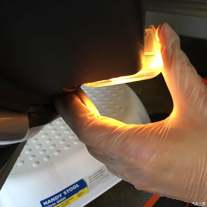 手挡位置右边隐约能看到一颗螺丝,把它拧上。拆装这个照明灯线需要把小灯泡拔下的,灯泡往外抽就可以卸下。