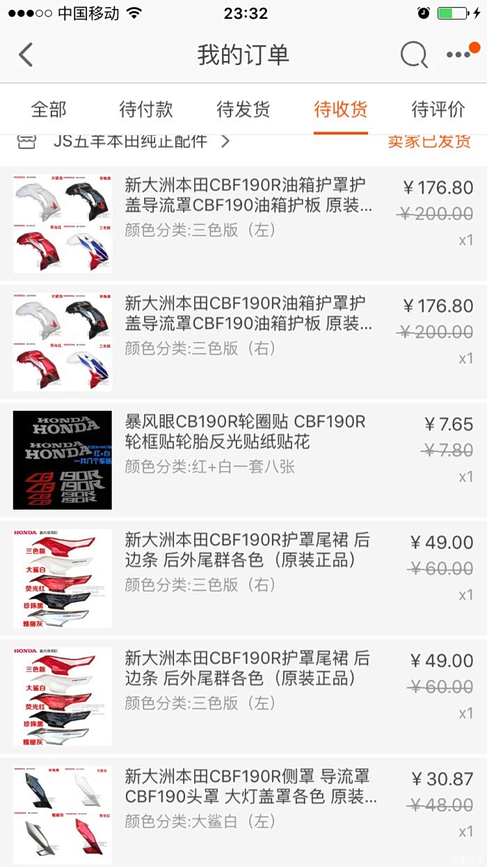 一直很喜欢三色版190,无奈买车时三色版要比黑白色贵出一两千,这不是冤大头嘛,所以我提了黑色。就像港囧中徐来那个遗憾,我心中一直对三色版无法忘怀,终于在某天心血来潮定了三色套件。不得不说新本的东西贵,几块塑料六百多,反观五本便宜的多,不过我不喜欢五本190的gp版花,gp版花在车的车型漂亮,在190上总觉得别扭。