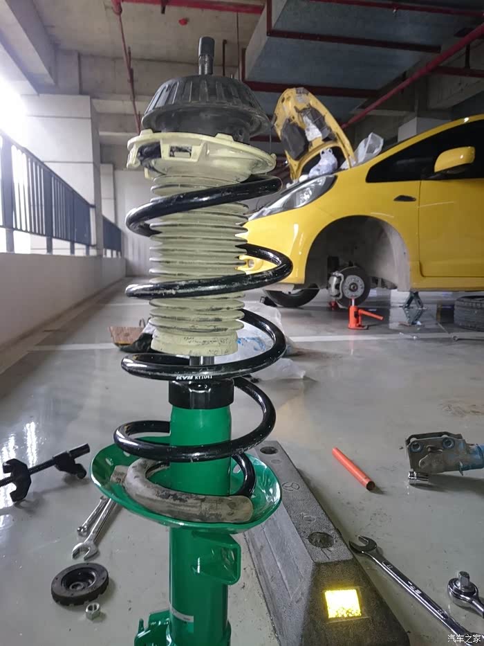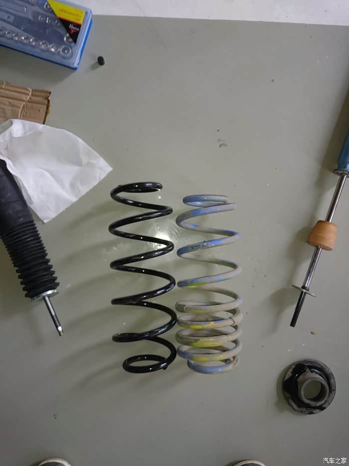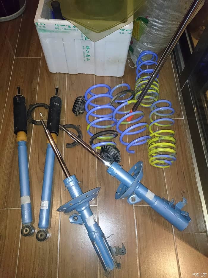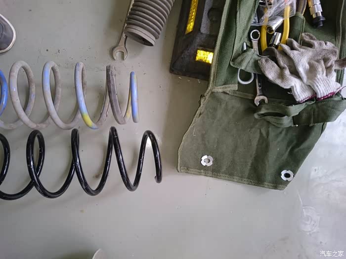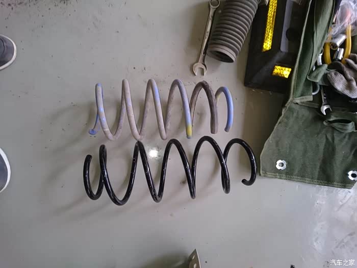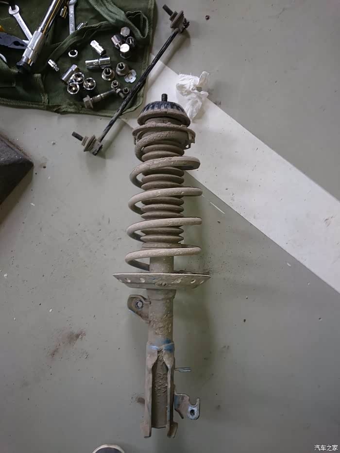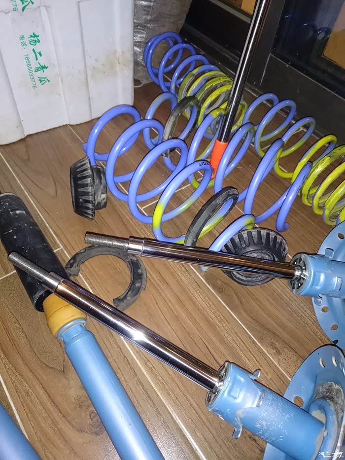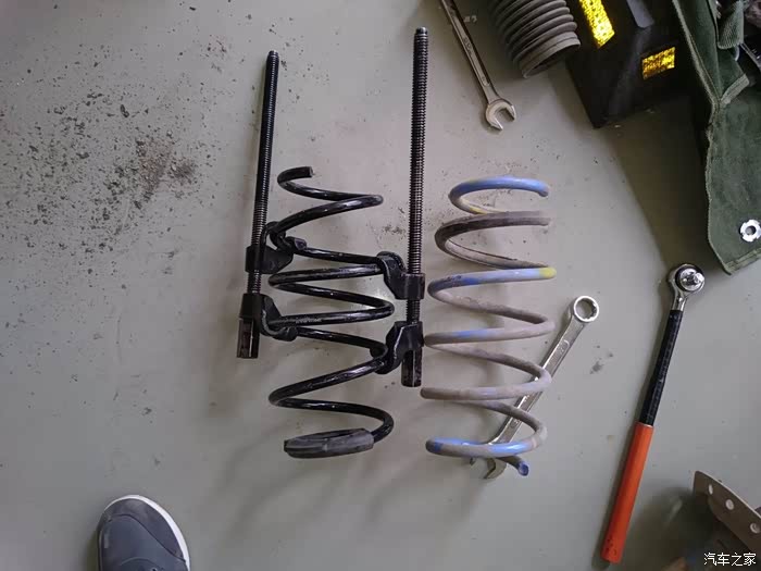 然后就到货了,然后就开始装车,曾经蓝桶在外头店面装的,300块,自己一直跟着看,发现挺简单的,所以买了些工具,在这两年多里自己也一个人拆装过弹簧三次。SO,开始~
