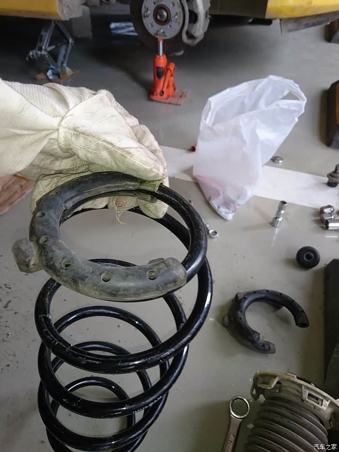 EPP和KYB弹簧还有原车的各种胶垫,拆左前论没拍什么照,接下来的右前轮详细点