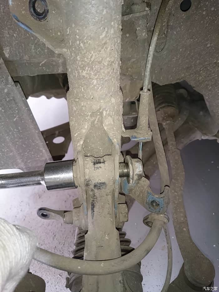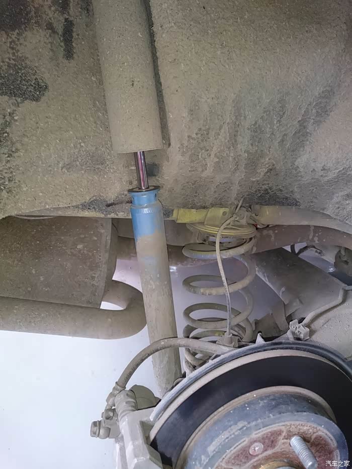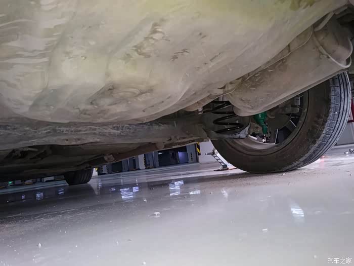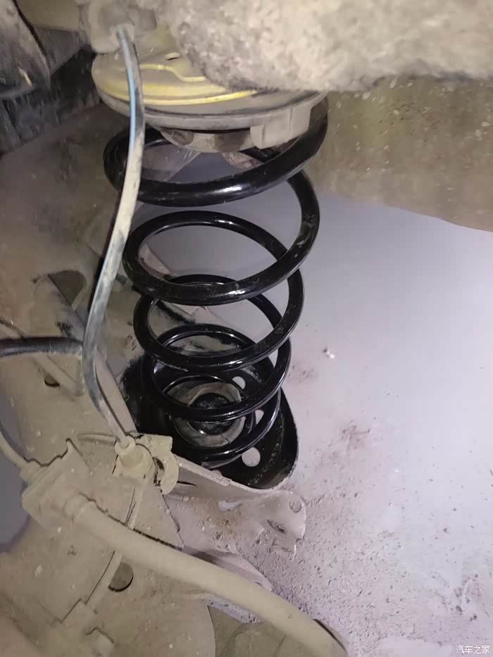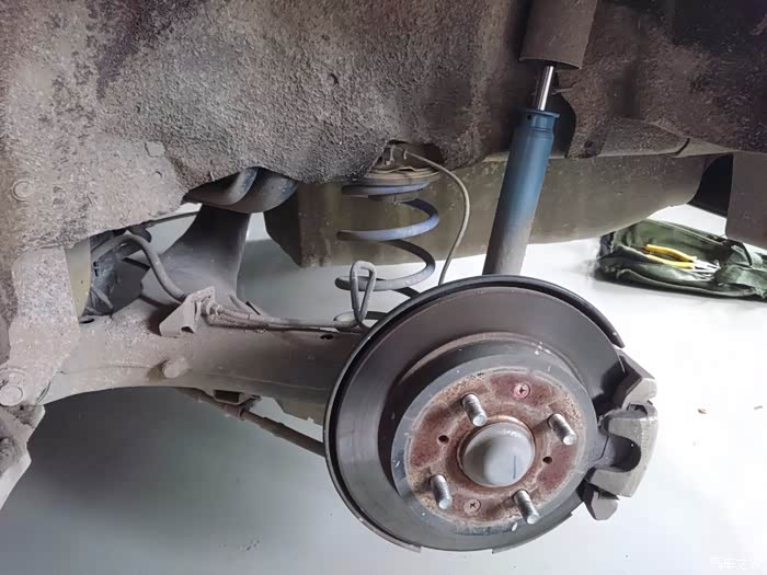 提一下,拆后弹簧的话必须两边车身都要顶起来,要是我拆左后轮,但右后轮的车身不顶起来保持高度一致的话,扭力梁和平衡杆会让弹簧基本拉不开,也就拆不下,装也亦是如此