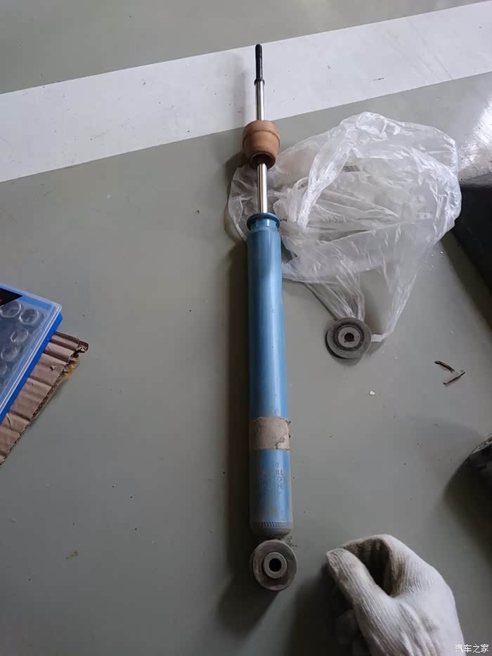 换下的蓝桶和TS短弹簧,为什么弹簧会有黄色,因为锈了一些,我用自喷漆喷的,哈哈。四根蓝桶阻尼正常,回弹正常,用手压对比了下,应该等同于EPP在阻尼4-6段(0最硬,16最软)的时候