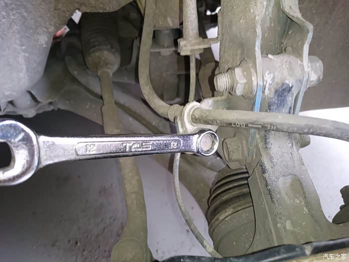 这边是右前轮的了,拆了轮子之后,先拆刹车油管固定螺丝,12的扳手