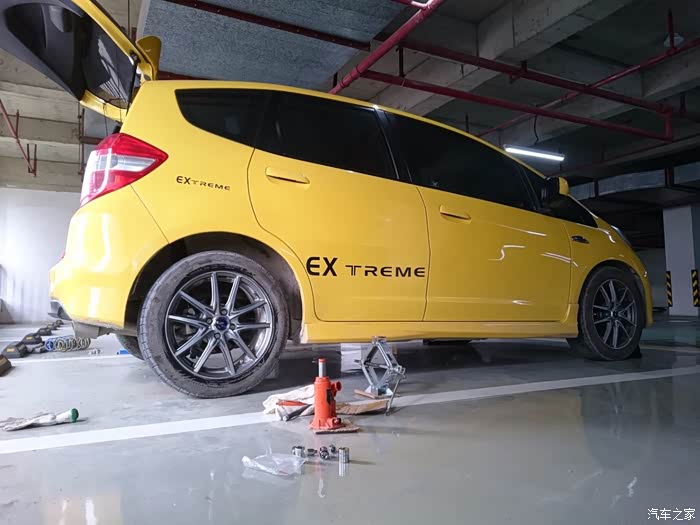 先换后避震和弹簧,第一步拆车轮,蓝桶和TS露脸