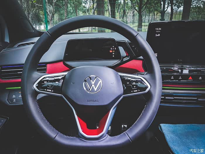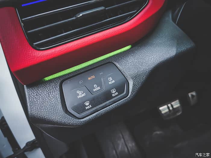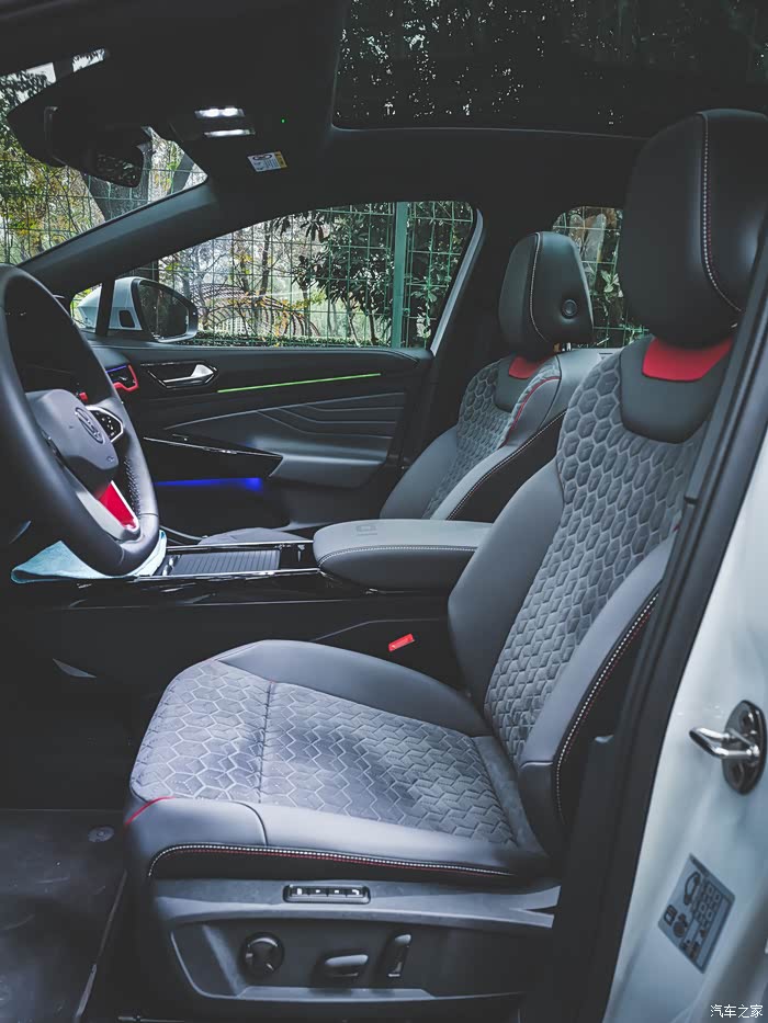 内饰与外框的红色呼应,运动感十足,多色氛围灯夜间亮眼,带有那么一点豪华