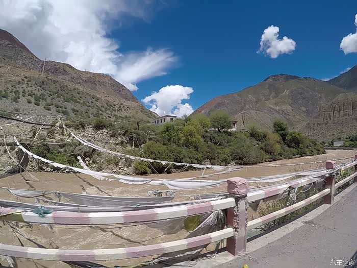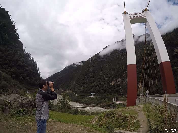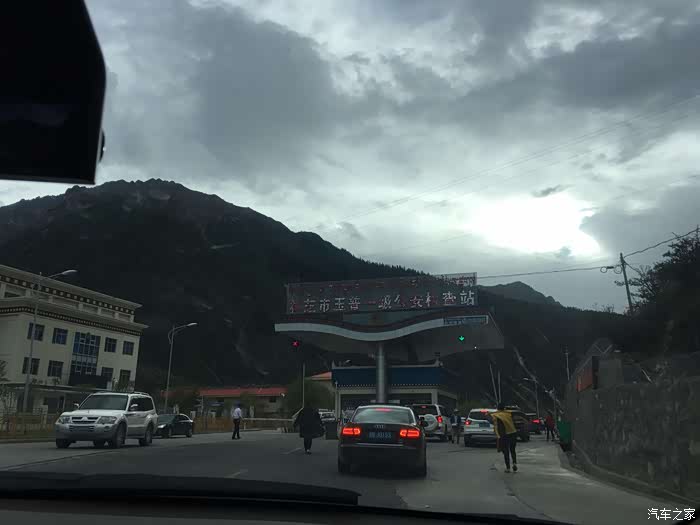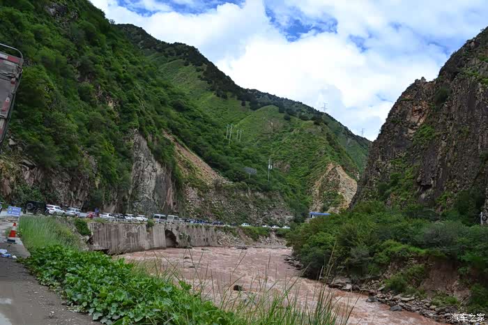 7号早晨8点半离开酒店,在巴塘县城吃了点早餐,面条馄饨,味道不错,顺道把油加满。巴塘到川藏交界处不远,路况还可以。穿过金沙江大桥就进入西藏,开始进行车辆检查,可能排队半个多小时。只需带好身份证,驾驶证,行驶证即可放行,并无多大麻烦。在金沙江大桥中央也就是川藏分界线看见很多骑行者在拍照合影,庆祝甚至欢呼,很理解他们的心情,我们开着车进入西藏的那一刹那也有同感,为了那一份期盼已久的情怀,西藏我们来了。