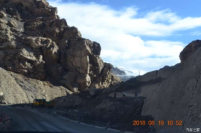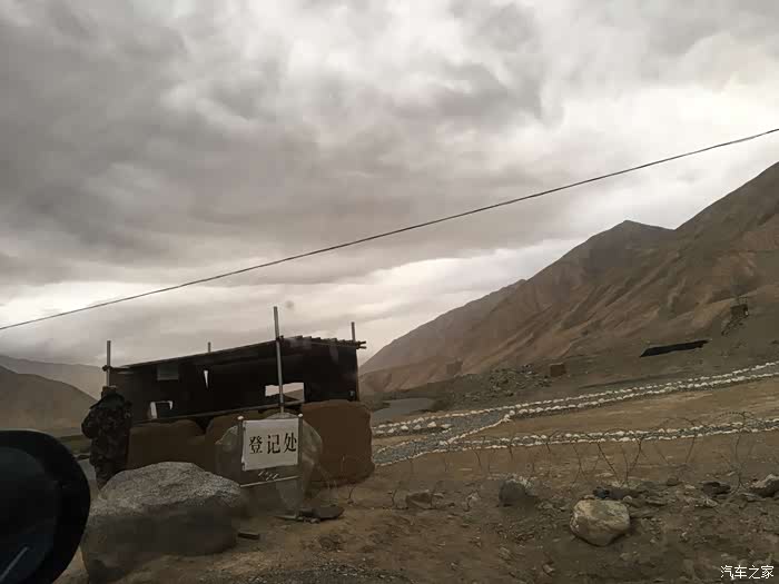 19号天还没亮就醒了,一看手表才7点,老规矩,在车上休息我起来了就不会叫醒LP。天气很冷,发动汽车,看见5辆湖南牌照的车队也准备动身。开出三十里营马上就有一个检查站,号称新疆第一哨所,接近1公里长的货车队伍在排队等候过境,我把车超过一公里的长龙以后停到第一个的位置,下车去边防站看了一眼,8点开始办理过境手续,一看还有半个小时,回车里等候。天是真的冷,估计也就几度,我穿的短衣短衫冷得够呛,等到快8点套了件毛衣去办理过境手续,人不多,估计后面大车司机都还在睡觉。边防战士倒也很通人情,按规定需要全部人员到窗口刷脸,我解释我太太身体不适(其实是怕她冷着),能否通融,战士看了看行驶证驾驶证和我们的身份证,也没说话,直接把路条开给我了。在此说明一下,三十里营那个边防站通车时间是白天8点到晚上10点,也就是说晚10点以后到次日早晨8点是不允许通车的,在我翻过几座达板以后觉得也合情合理,这几座达板确实有点小危险,路况很差,弯多陂陡,全是碎石路面。全部翻过这几座达板以后,我才彻底松了口气,倒不是因为弯多路陡,我对自己的驾驶技术还是很有自信的,主要是怕碎石把轮胎扎破,我只有一个备胎,而且弯多路窄,扬尘四起,换胎还是颇具风险。
