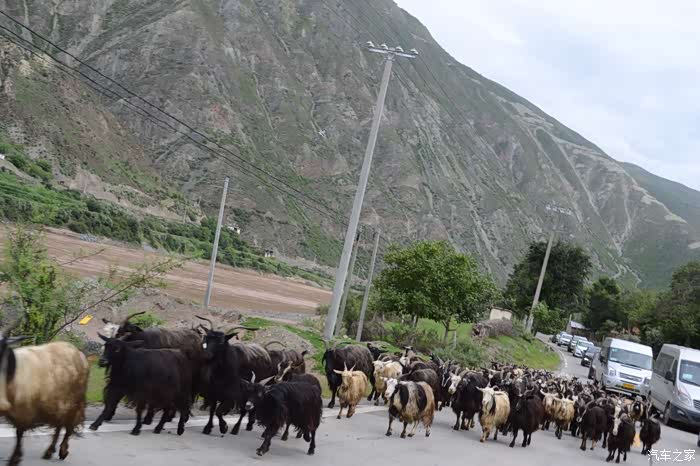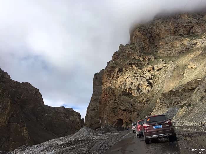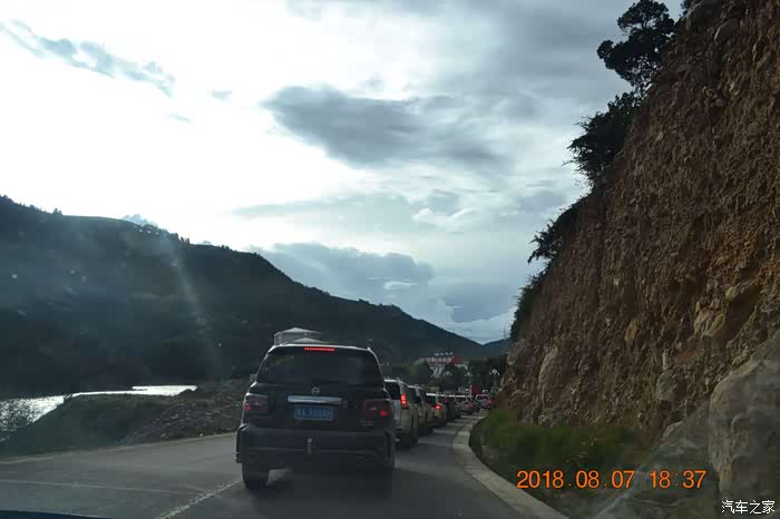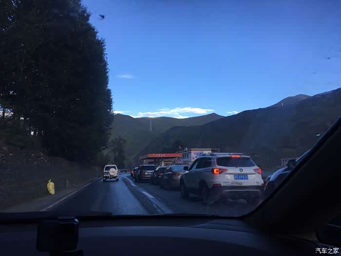 过了金沙江大桥进入西藏以后,路况变得复杂。整个海通沟那几十公里路实行单边放行,基本都是水毁路面,炮弹坑,凹凸不平,坑坑洼洼,这段路的平均时速也就20公里的样子。好在司机仔细观察路面,放慢车速行驶还是可以通过这段看似山高水急的烂路,并没有托底之忧。过了海通沟路况变得好起来,不过国道上车辆很多,特别是大型货车,路又比较窄,速度一直提不起来,停停走走,到达左贡已是傍晚,再次把油箱加满。建议车友能在傍晚把油箱加满,以免第二天早上排队加油,浪费不必要时间。