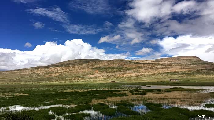 层次分明--云层,山脉,湖水,草甸