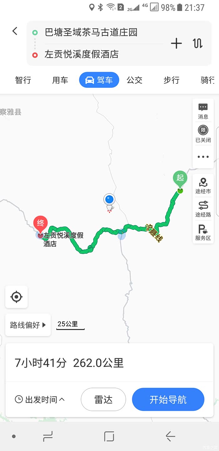 8月5日上午开始把所有准备的装备整理搬运进车里,本来打算8月6日早上出发,但由于无法抑制内心的小激动,实际上是5号晚22点就启程出发。也不是没有做过预案,考虑到天黑不开山路,所以晚上23点出发基本是全高速,到达康定天刚蒙蒙亮,6号早晨6点左右在县城吃了点早餐,加油,继续上路。中午13点左右到达理塘,继续加油吃饭,6号晚上5点到达巴塘,宿巴塘茶马古道庄园。 第一天行驶里程782公里。