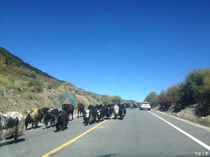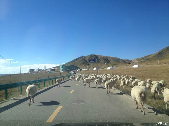 5.在大草原行车路况非常好,但有时会突然跑出大群的牦牛,一定要注意安全。开车时遇到牛羊过公路时,你能做的就是欣赏、等待,不要试图闯过去。不要跟自己找麻烦,也不要跟钱过不去。