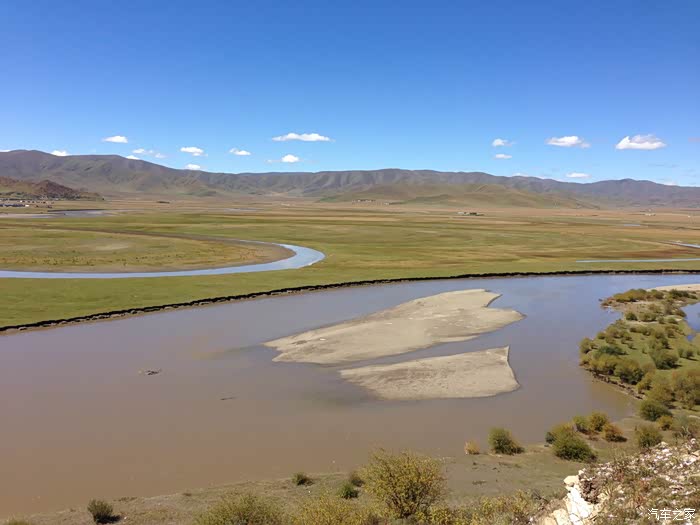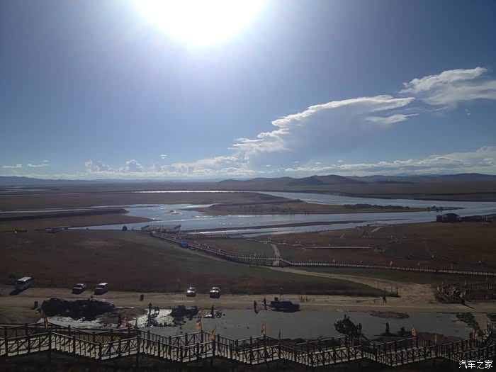 3.黄河九曲第一湾(五星推荐)。从月亮湾出发,经过红原县城,瓦切和唐克就到黄河九曲第一弯了。沿着路牌指引很容易就能到达门票售卖点,购买门票后继续前行几公里即可到达核心景观区。九曲黄河第一湾以一种大度的姿态、平和的心态展现了黄河精神“宁静致远”的阴柔之美。景区现正在争创国家AAAA级景区,配套设施实在不敢恭维。九曲第一湾景区由两条驿道贯穿始终:一条驿道直达黄河边,环绕露营营地(帐篷只能搭建在营地里,晚上十一点左右有工作人员来收取40块的营地费);而另一条则直通景区的山顶,沿途设有几个观景平台,制高点还有个玻璃的观景塔,每到傍晚时分总有大量摄影爱好者囤积在此以求能记录下“黄河天上来,红日地中落”的美妙景致。温馨提示:如若要拍摄九曲黄河第一湾落日的朋友在上山前一定得带足衣物和食品,因为夏季的落日基本在八点以后,等候的过程中风大,气温低,这可不是展现风度的时候,倘若感冒可就走远了。不得不提的就是晚上满天繁星点点,一闪一闪的,甚为浪漫。