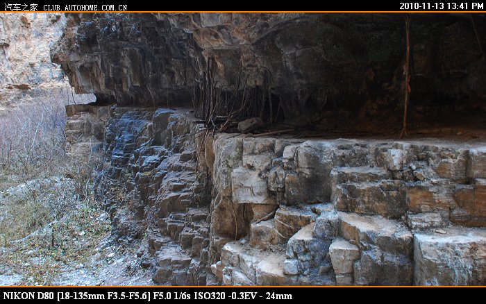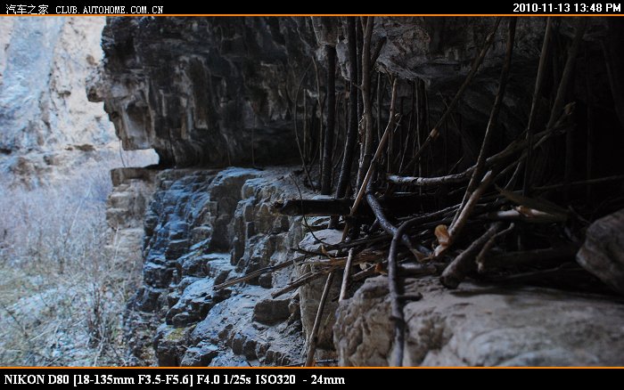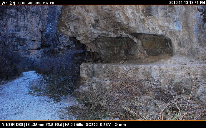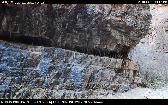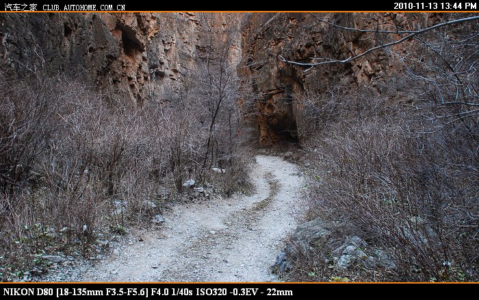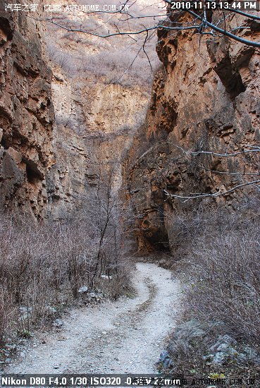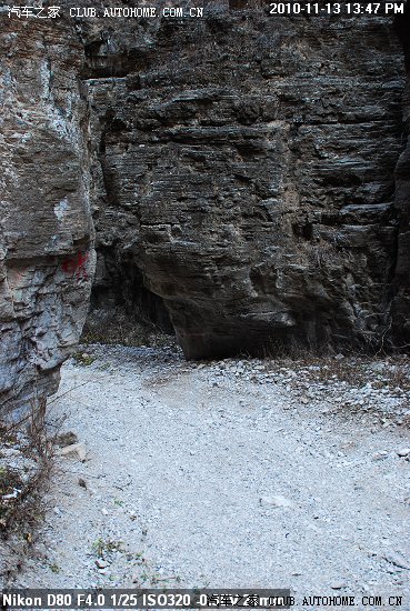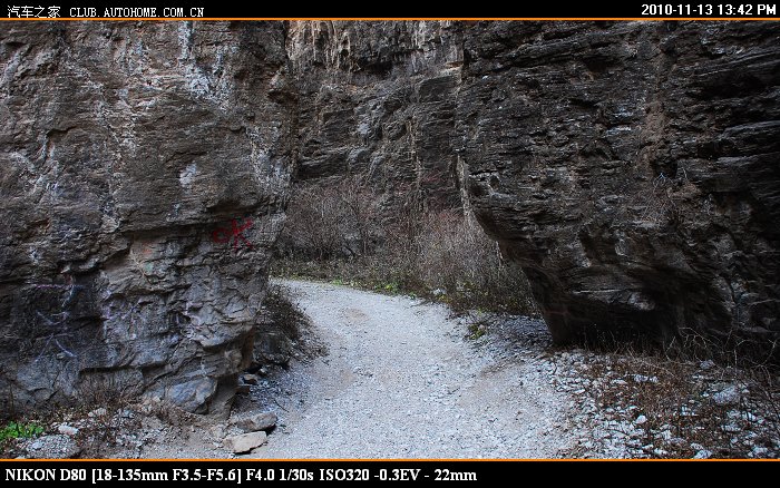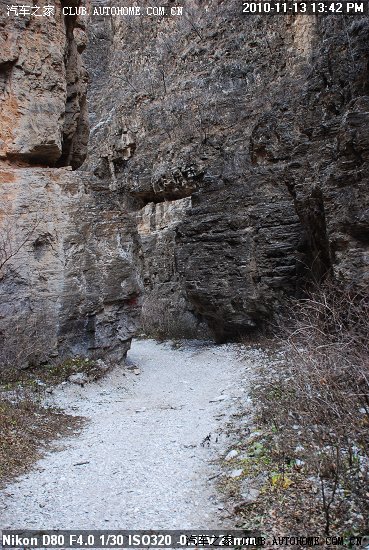 到了中间这截的入口处 又停了一辆车 狮跑 这车有点大 走刚才那个岩壁凸出处,觉得够呛