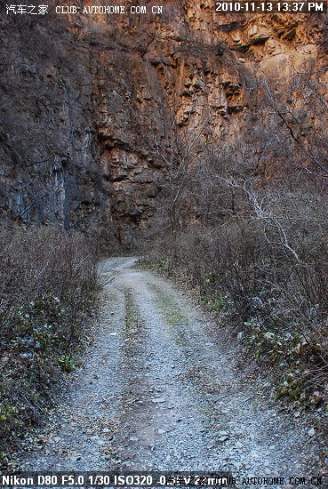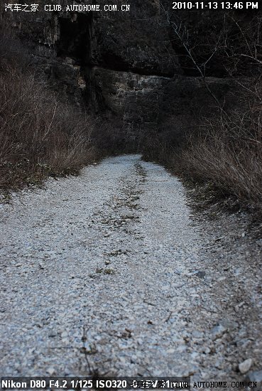 碎石路 刚好一辆车的宽度 小S刚好通过 如果是大型的越野车 与路边的灌木丛刮蹭的几率也高了
