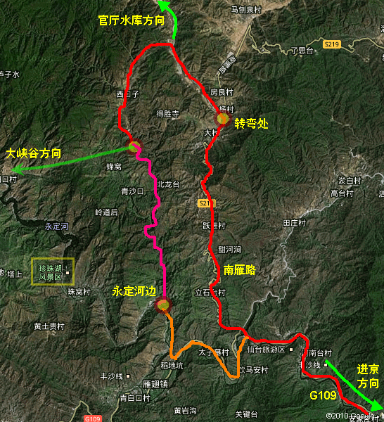 从莲石路直接杀向门头沟 穿过门头沟城区 然后沿着G109一路向西