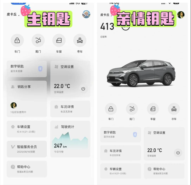 远程启动发动机功能对油车车主更友好(ID4X是电动车,但油车版数字钥匙支持此功能),冬天提前热车,夏天提前降温,上车就能出发,体验感直接拉满。