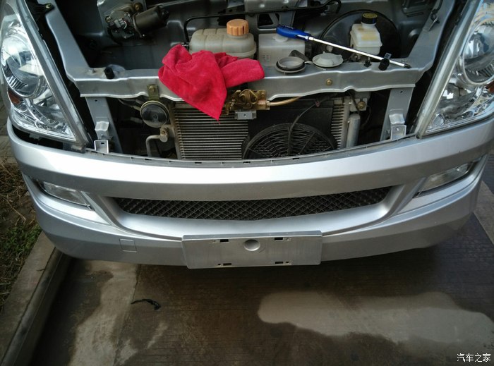 保险杠在牌照中间还有一颗固定螺丝,需要10个的套筒。前保险杠总共五颗螺丝,两个螺丝冒,不要拆漏了哦。