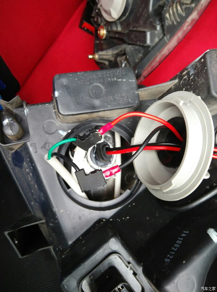 疝气灯的黑线插灯泡黑色插座,剩下的红色插绿色的插座。