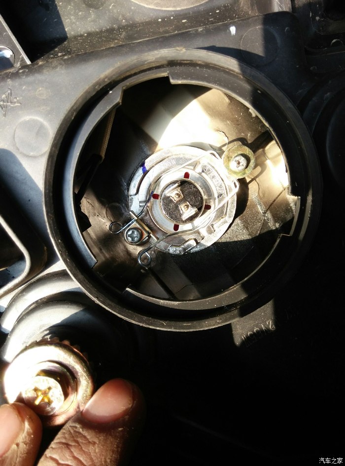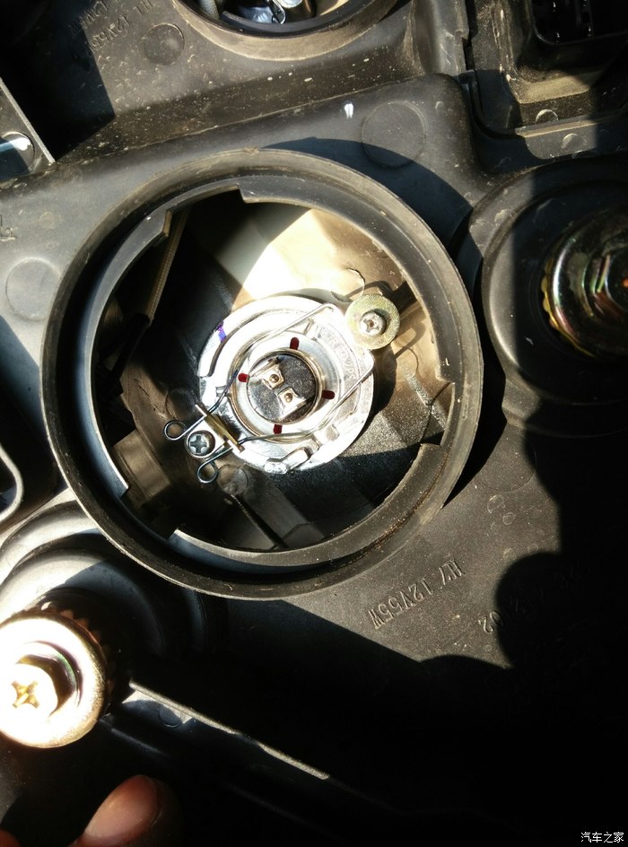 固定灯泡的钢丝,向下一按再往边上一拉就出来了。这是拉出来后的效果图