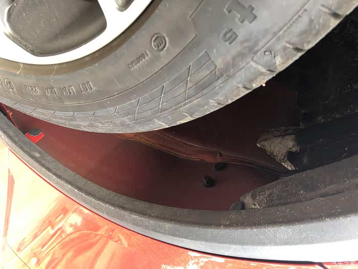 某日,国道上被掉落的土块打掉这里一块!很久才发现!没事绕车检查一圈很重要——尤其是上高速前!