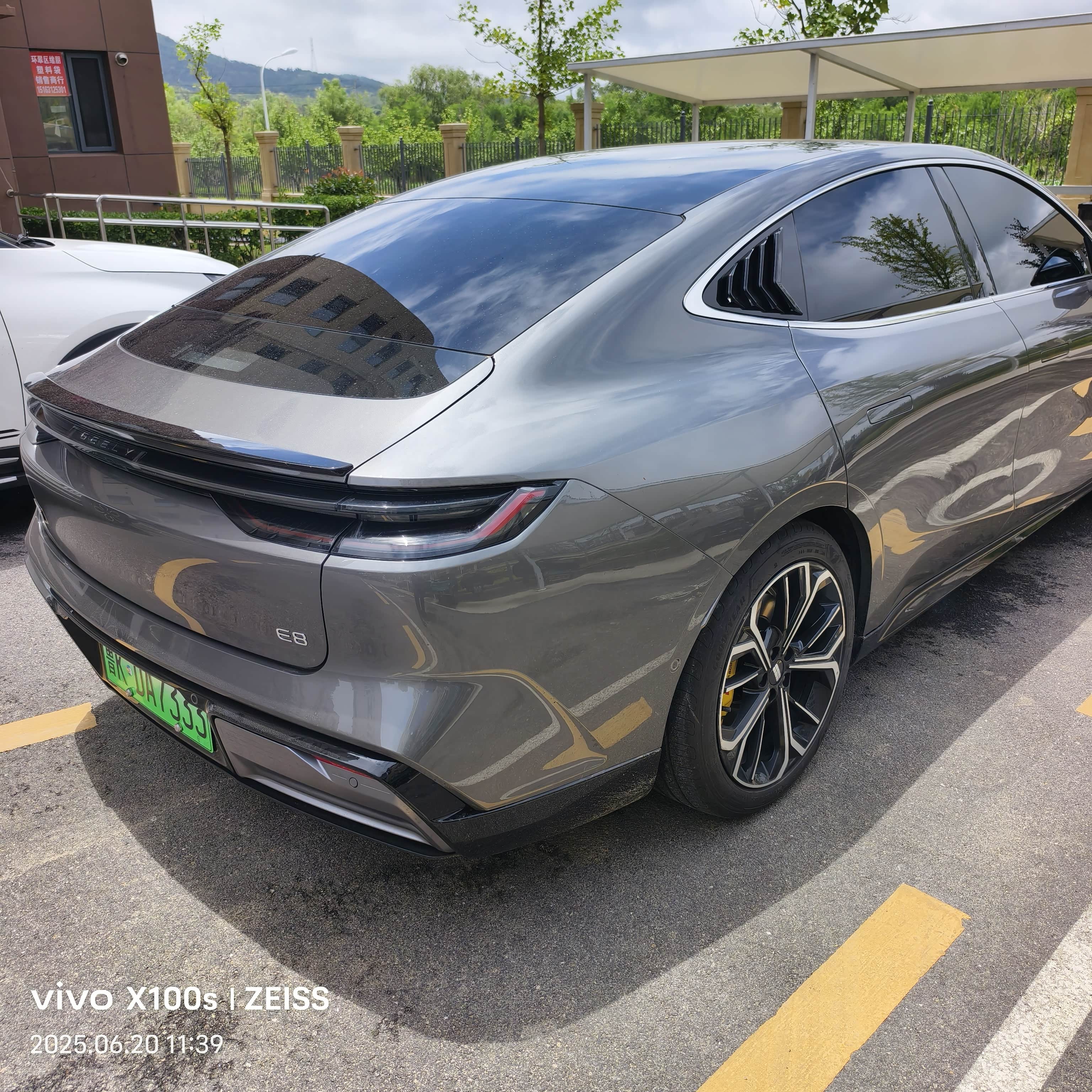 · 2025款E8全系新增了 “凝霜银”车色 和 “初霁白”内饰 可选,审美更高级。