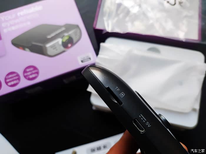 记录仪侧面有TF插口和5V的电源口