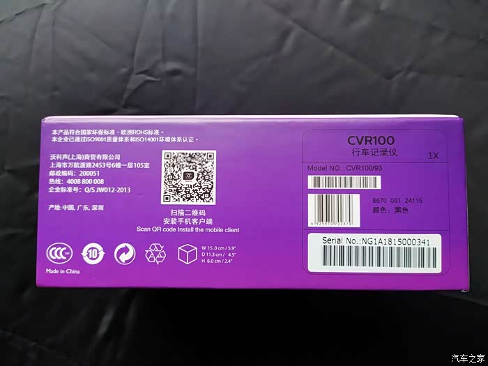 外包装背面,有这个记录仪的技术参数