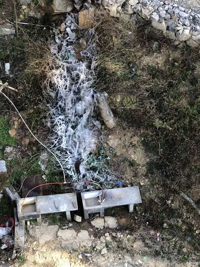 越到高出越冷,看着冰霜结的应该是水管里流出的水在晚上冻住的。