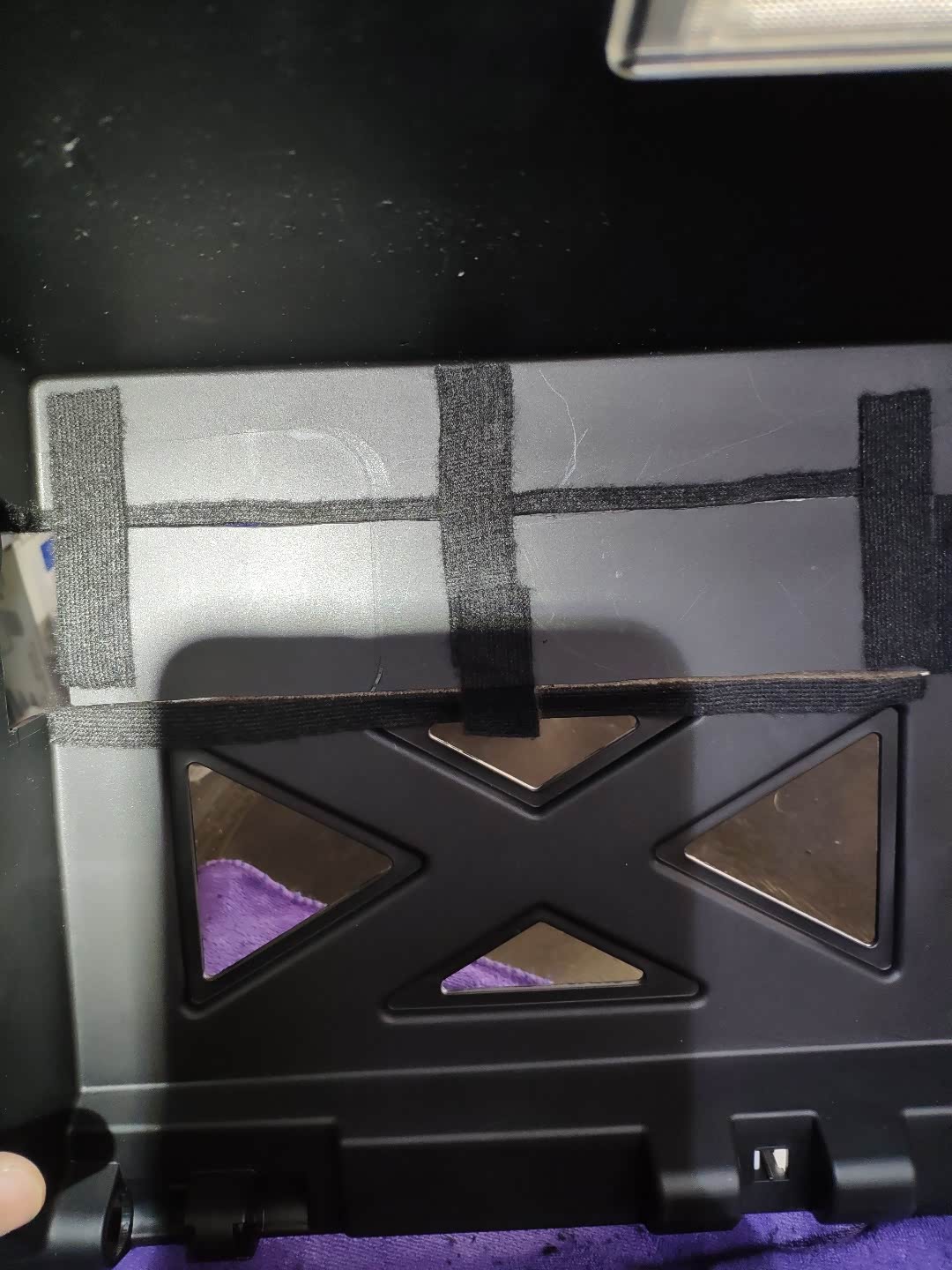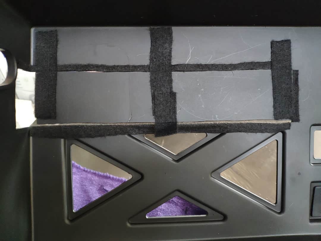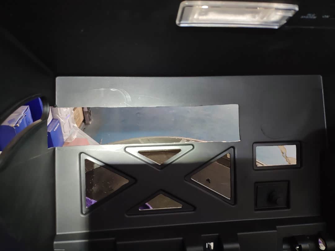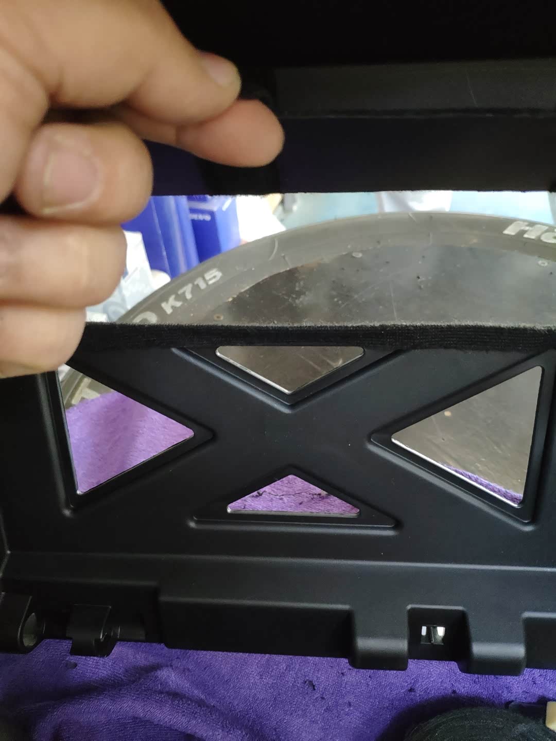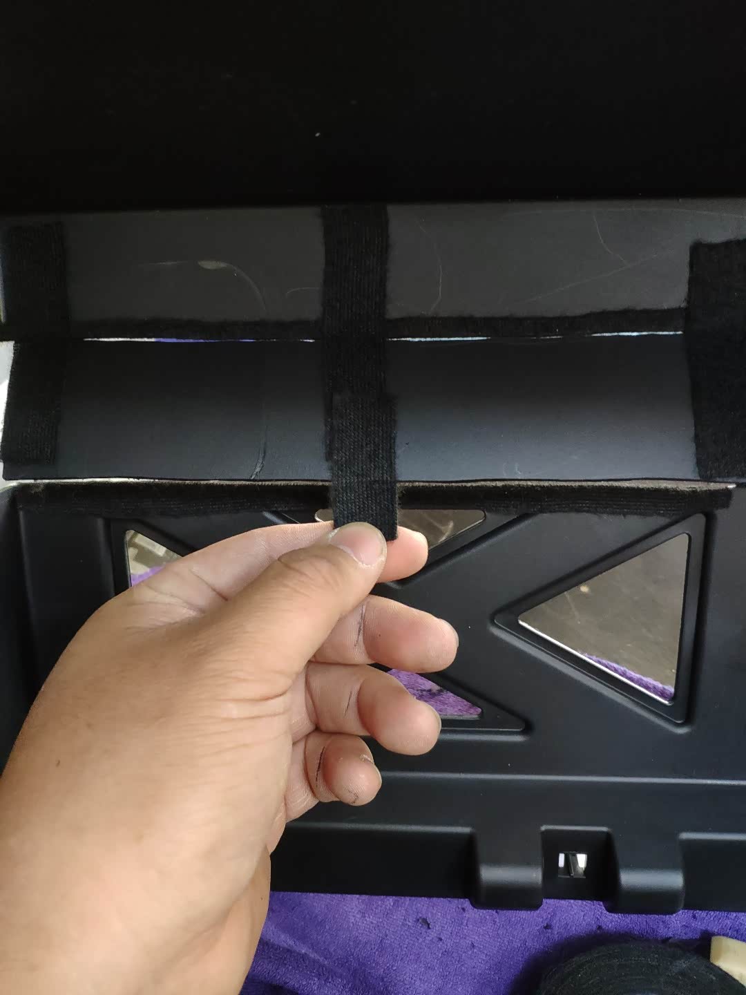 根据之前车友提供的尺寸,拿壁纸刀割开,有一个尺寸不对,就是下沿不用那么低,和那个三角形的边齐平就可以