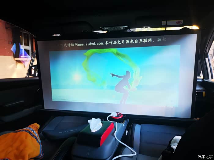 在车友群里也有人使用其他的投影仪搭配车载逆变器在车上体验家庭影院,效果是差不多的,只要这个投影仪清晰度够而且能够调整幕布尺寸。
