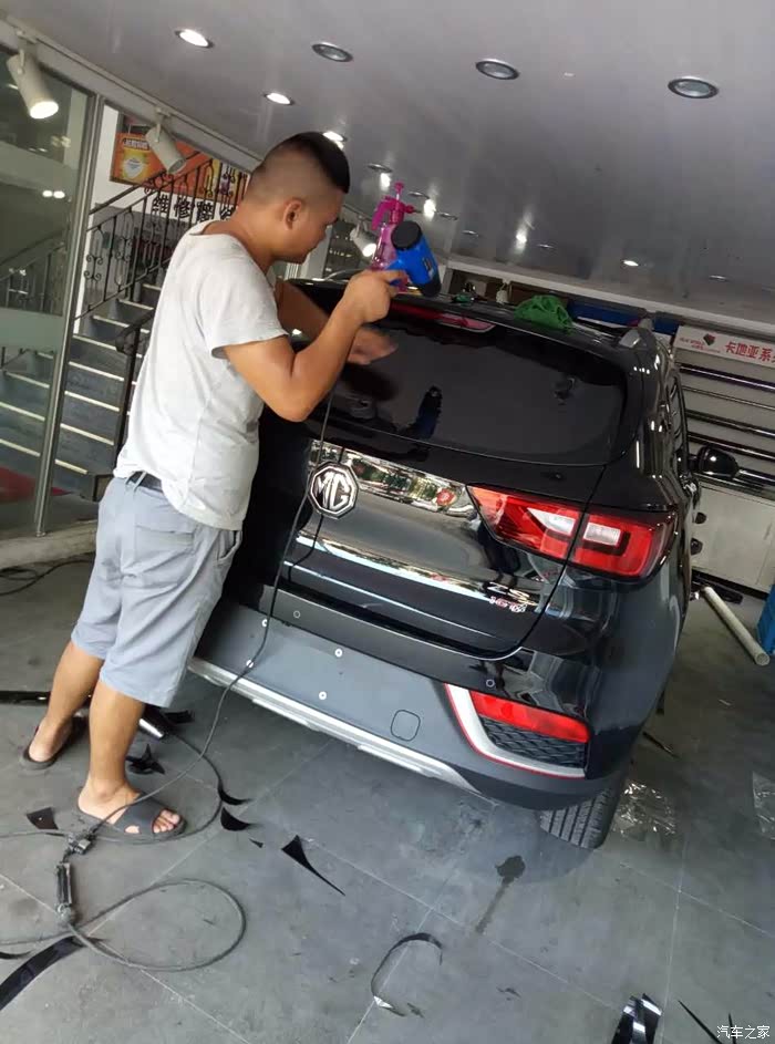喜提名爵ZS曜石黑顶配,贴膜作业