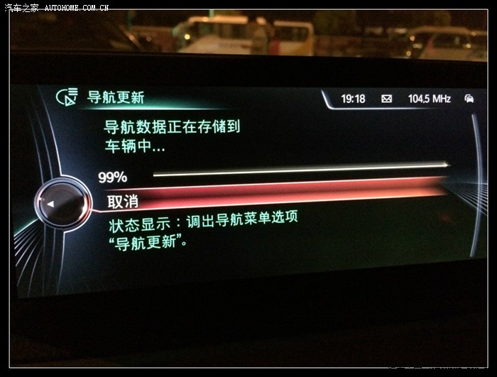 将U盘插入扶手箱中USB,几秒钟后主机自动提示更新。