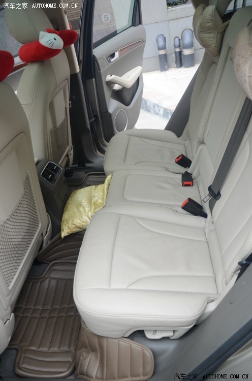 后座,小,确实是小,本人身高186,坐进去那叫一个憋屈啊,这个劣势无数次被家里人攻击。。。中间的黄色带子是炭包,感谢深圳Q5车友会的D姐姐亲自缝的然后送给我除味,感谢ing......
