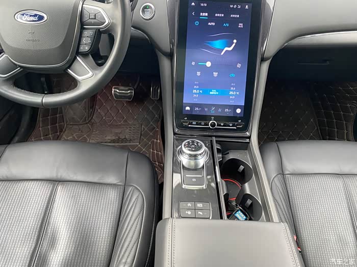 坐在后排感觉就出来了,虽然亚洲龙的座椅也很软,不过它没有通风和按摩的功能,夏季较热,长途行驶也容易疲劳,远没有按摩带来的舒适。同时后排空调也是独立的,而且中间的扶手箱可以控制的功能非常多,除了空调、SYNC+系统外,座椅加热、通风和按摩统统都能在这上面操控,其自主性完全不输前排,同样享受“操控自如”的感觉。