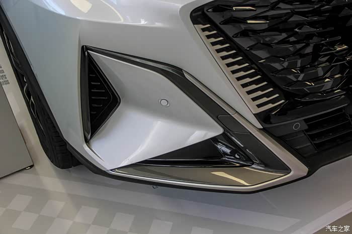 前包围的造型也是新车给人视觉冲击感最强的位置,两侧进气导流槽设计造型十分夸张。中网直接与前包围融为一体了。