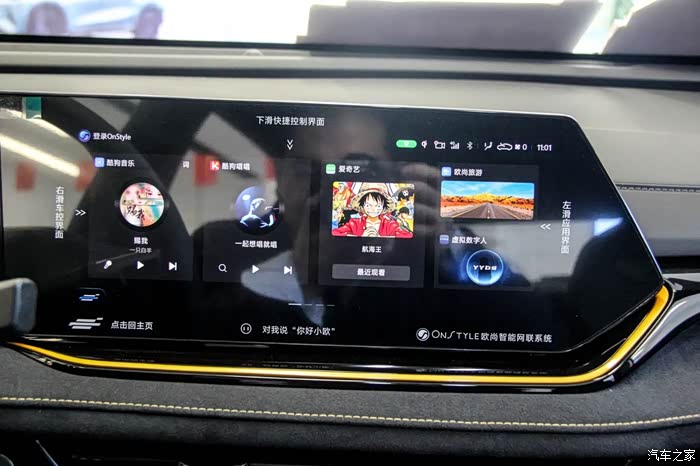 车机搭载OnStyle5.1智慧快乐座舱,内置MTK芯片,可实现1秒开机、1秒联网、三屏互动界面切换无延时感,以提升操作体验。