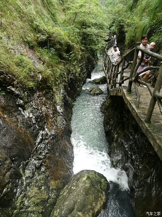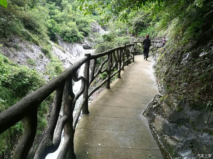 走在栈道上,旁边是奔腾而过的流水,体会着自然风光