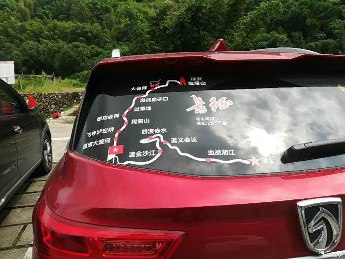 后窗贴纸:长征路线图,我也想贴一个,一直没行动。