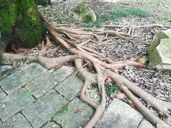 地板已经铺了一些年啦,古树的根在缝隙间茁壮成长!显现出他的沧桑与努力!