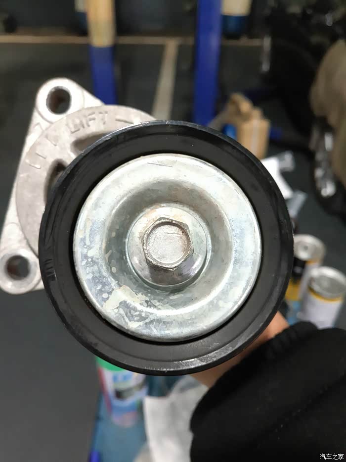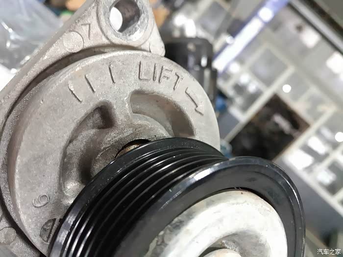 这张图片一定要说下,上面有个很明显的摩擦痕迹,就是当时我在路边摊换的,师傅带螺杆的时候没有带平,导致皮带在上面摩擦之后留下的印子,真的想骂人,这个问题也是这次去马自达4S店那个师傅拆下来之后看见给我说的,运气好的是皮带没什么大问题就是边边起了一点点毛,螺杆最后还是成功的带进去拧紧了,不幸中的万幸,太吓人了,这个要是再久一点就真的不好说了,所以奉劝大家,还是去正规店拆装配件吧,万一出什么事,坑自己事小,坑到家人朋友就不好了。