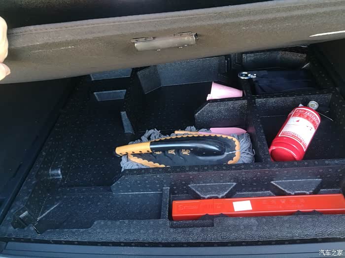 主要是后排放到一个座位后,还可以做两个人,挺好的,喜欢这样的设计,这一块是我真没想到的,属于意外惊喜。然后取消备胎后,下边设计的储物格,我是很喜欢有些小东西就放里面好了,这样后备箱一点也不乱了,干干净净的让人很舒服。