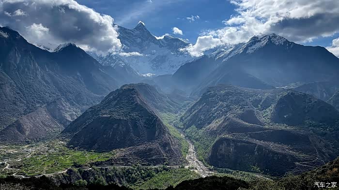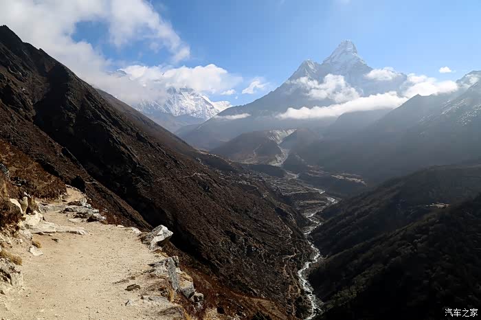尼泊尔 珠峰徒步,出了珠峰第一大镇南池后马上就可以看到美丽圣女峰Ama Dablam,最远处就是珠峰。
