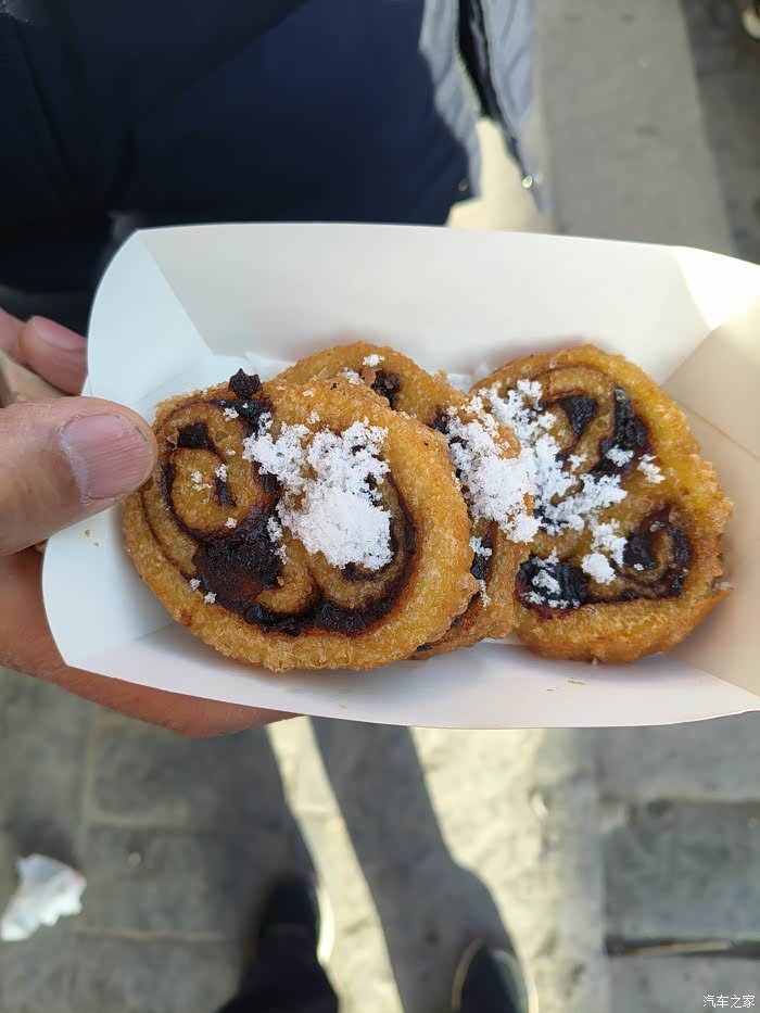 再往前,又看到了“糖油糕”,就和我们当地的炸糕差不多,也是我爱吃的,老伴儿又给我买了一个,味道也很好。