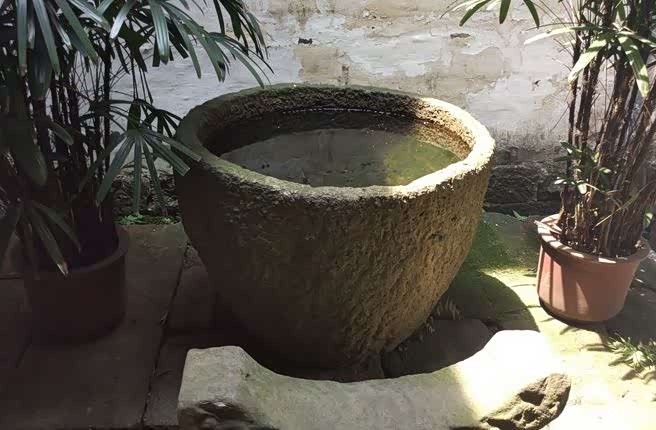 往左边拐,首先走进了一幢古宅。古宅四面是砖墙,屋内为木制。大厅有天井,阳光从天井照进来,使得整个大厅亮堂堂的,不像在别处看到的古宅那般阴森。天井正下方有一口大缸,里面盛满了水,是为防火之用。