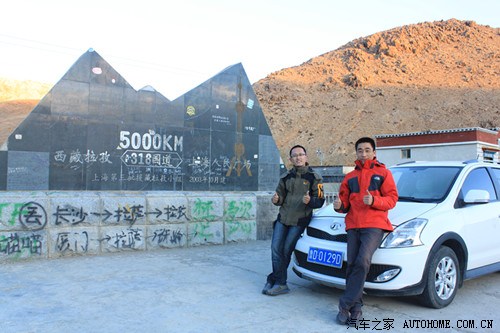 游记的参与者:1、人:我和凯哥两兄弟;2、车:小炫兄弟(我的长城炫丽小车1.3VVT CROSS),把小炫称为兄弟因为我感觉车也是有灵魂的,你对他疼爱呵护他同样会对你关怀备至的!他这一路的顽强拼搏,非常忠厚的没有给我们俩老凯制造出更多的麻烦,有的小麻烦是因修路限行被迫在夜晚翻越东达山时因为水箱盖坏了而造成水箱里的水在高温下外溢,在跑完川藏线几百公里的碎石烂路后,后面的两个减震器漏油坏掉了,在日喀则服务站因没有备件无奈又坚持着跑完去珠峰大本营往返204公里的碎石搓板超烂路和往返樟木后回拉萨的路,在从樟木口岸返回日喀则途中距日喀则还有100公里左右时,因我不小心轧到路上一个长长的螺丝棍把右后轮给扎个大洞,后来到日喀则一家米其林轮胎店买了两条全新的更换在前轮使用,扎坏的那条轮胎就扔掉了。除了这些,其他问题都没有,并且每次启动都是一次成功。