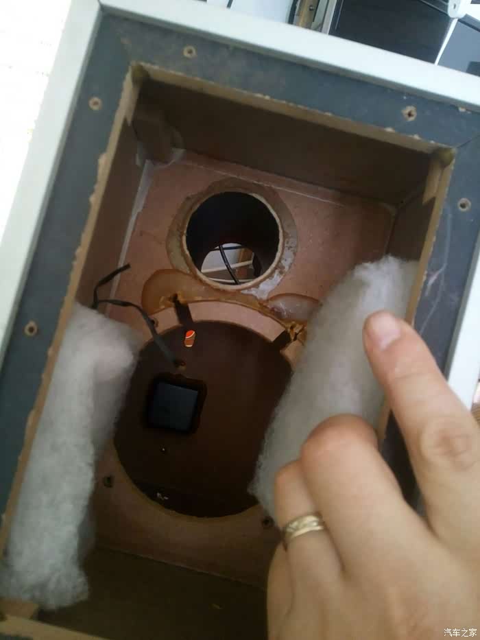 制作完成一对小低音炮,能塞进衬板,不占空间了,且在相对密闭的空间,低音效果更好。